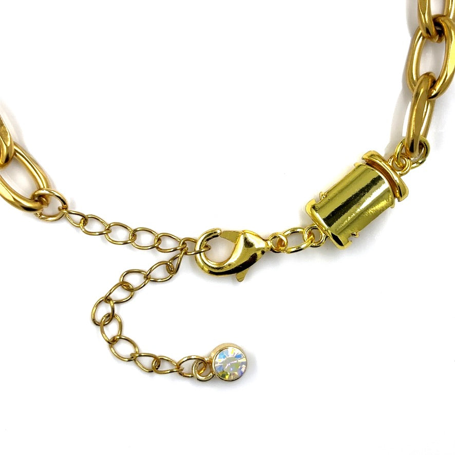 As opposed to typical magnetic clasps, our's stays secure and will not inadvertently pop apart until you decide to take it off.