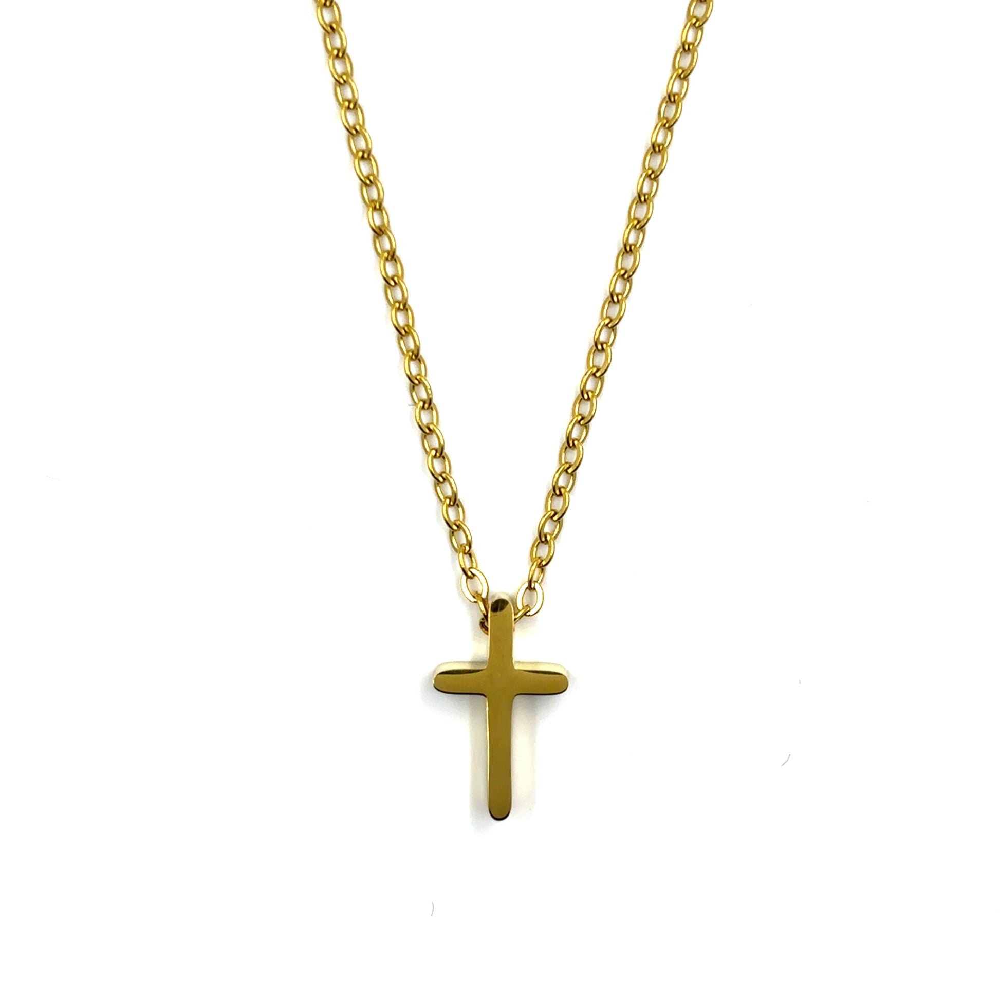 An elegant cross pendant suspended gracefully from a refined 1.5mm curb chain, creating a timeless piece with understated charm.
