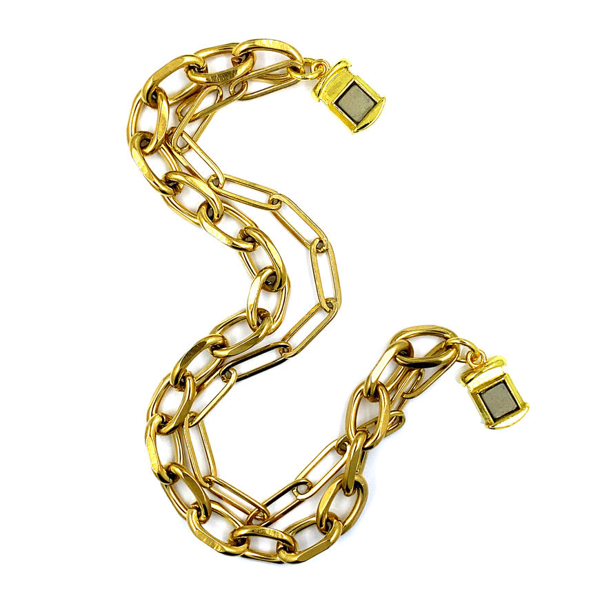 This double-strand bracelet pairs a sleek cable chain with a trendy paperclip chain in durable stainless steel—and here's the game-changer: our patented Freedom Clasp makes getting dressed up actually fun. No more fumbling, no more frustration. Just pop it on, and enjoy a sophisticated look that works for literally any vibe. Simple, stylish, and seriously stress-free.