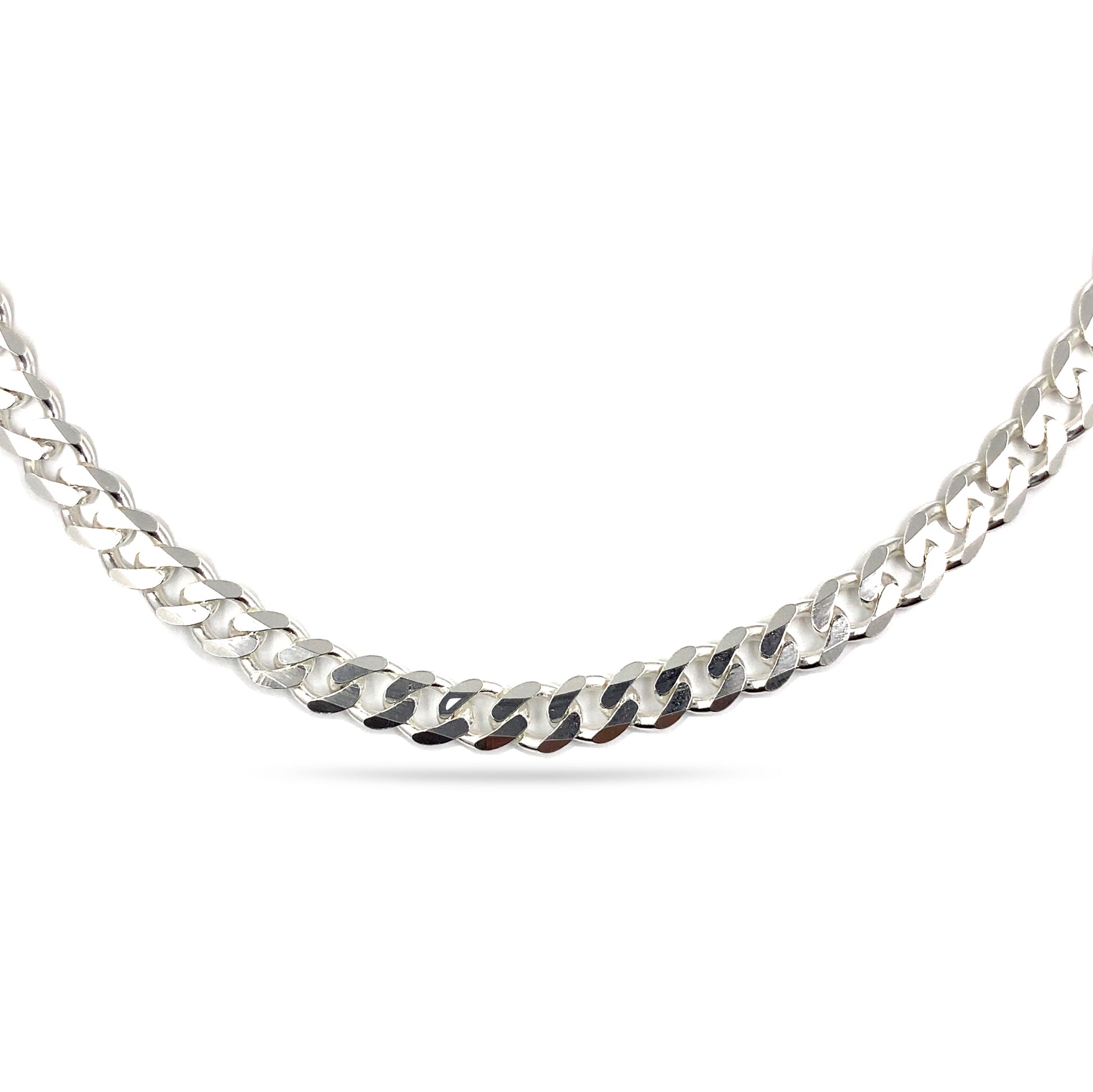 This versatile sterling silver Cuban Link necklace showcases meticulously beveled links that create a luminous, refined aesthetic. The flat-lying design delivers exceptional light-play and visual depth. Crafted from substantial sterling silver and finished with fine silver plating, the chain maintains its pristine white luster while resisting tarnish. Whether you're drawn to bold, contemporary styling or layered, intricate compositions, this necklace offers the sophisticated foundation your designs deserve.
